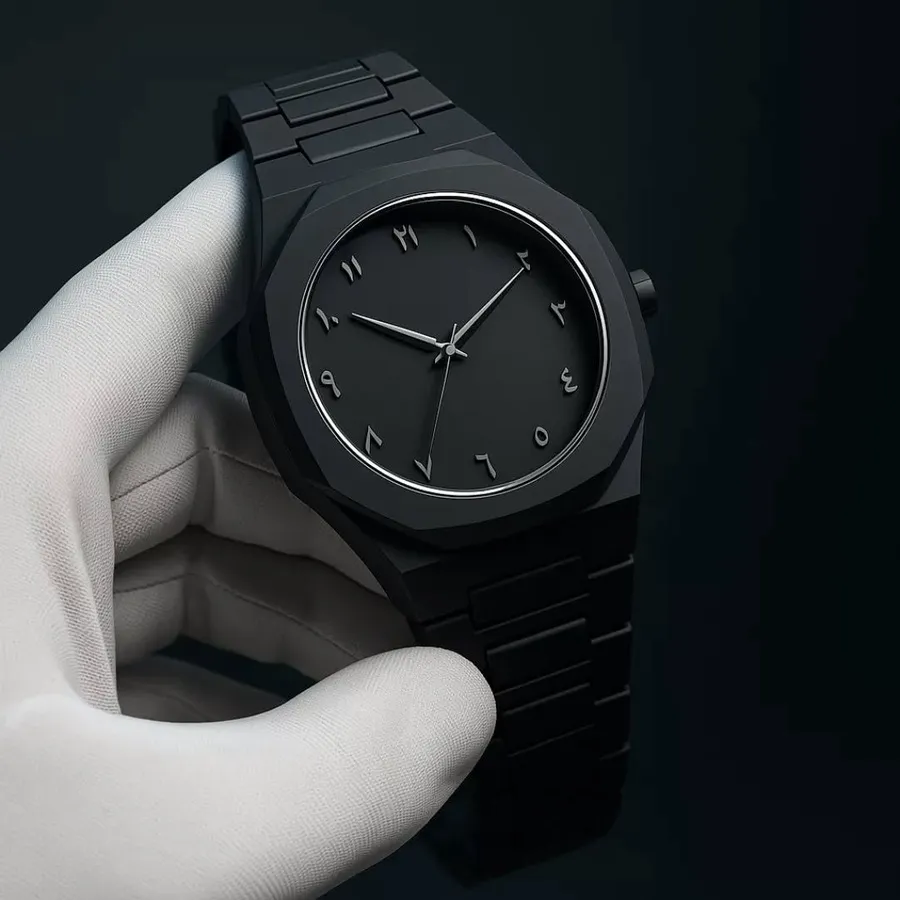 - خامة الكاربون: الساعة مصنوعة من الكاربون المقاوم للصدأ، بلون أسود فخم وثابت تماماً مش بيبهت مع الوقت.