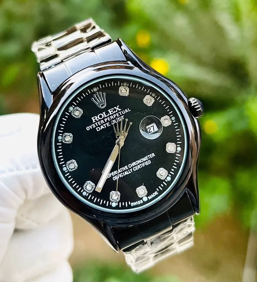 - تقفيل احترافي: الساعة مختومة بختم البراند على الضهر، وبكل تفاصيل التصميم اللي بتديها هيبة الرولكس المعروفة.